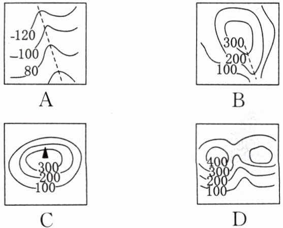 2. 下列是山地不同地形部位的等高线(单位:米)示意图,其中表示山脊的是(