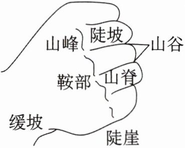 我们学习等高线地形图时,通常用握紧的拳来演示各种地形部位(如图)。请根据所学地理知识,完成 1~3 题。