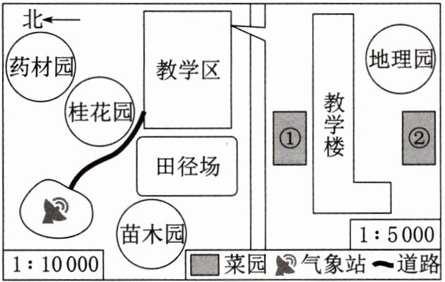 1. 同学们从教学区沿图中道路去气象站观测气温、湿度等数据,行走的方向是向 (