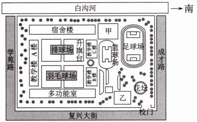(4) 校园里有甲、乙两块空地,学校要在其中选择一处修建学生宿舍楼,应建在______,并说出你的理由是______。