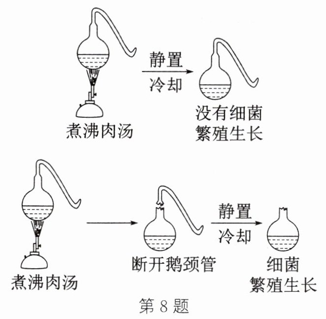 8. 如图为巴斯德的鹅颈瓶实验,下列相关说法错误的是(