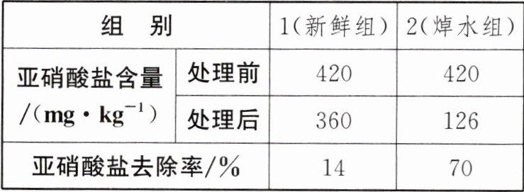 11. (2024·铜山期中)香椿芽被称为“树上蔬菜”,营养丰富,可做成各种菜肴。但是,香椿芽所含的亚硝酸盐高于一般蔬菜,人们常焯水后食用。某生物兴趣小组的同学想探究焯水对香椿芽中亚硝酸盐含量的影响,进行了如下实验: