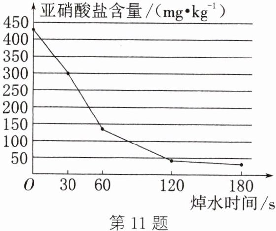 (3)有同学提出新的问题:焯水时间的长短对香椿芽中亚硝酸盐含量有影响吗?该兴趣小组进一步探究了不同焯水时间对亚硝酸盐含量的影响,结果如图所示。通过数据分析得出的结论是在一定时间范围内,