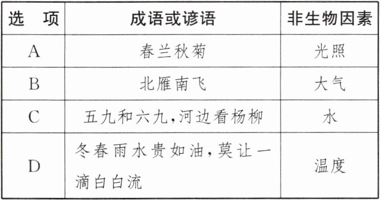 6. 以下成语或谚语与非生物因素对应合理的是(
