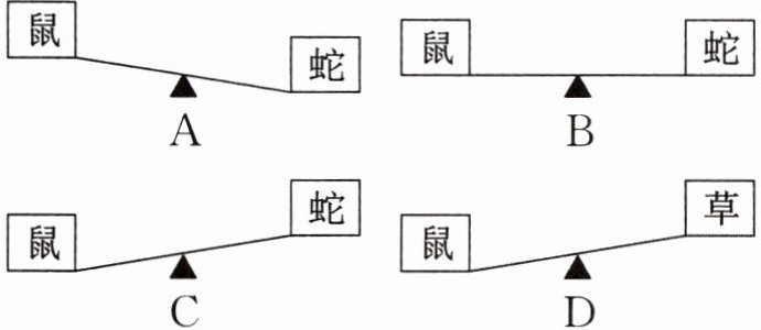 12. 在一片草原中,只生活着蛇和鼠两种动物,下面是这片草原中所有草、蛇和鼠所含能量的关系,能表达生态平衡的是(
