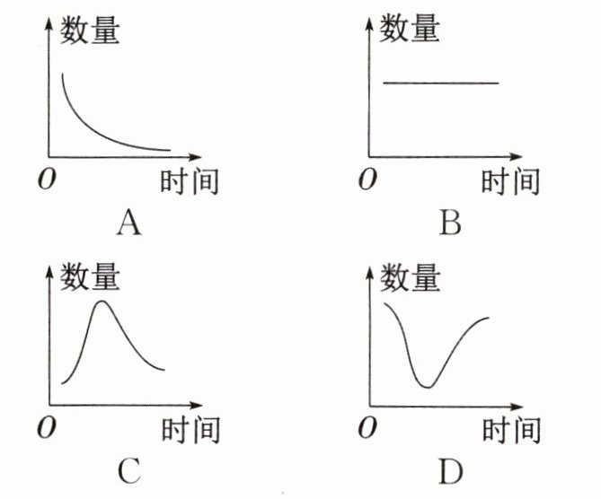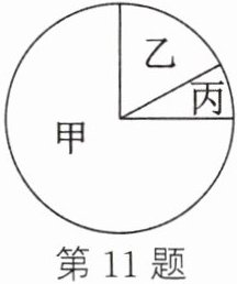 11. 某草原生态系统中,一条食物链中三种生物的总能量所占比例如图所示。若乙被人类大量捕杀,则一段时间内丙的数量变化曲线是(
