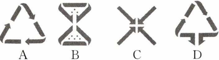 8. “垃圾不落地,城市更美丽。”垃圾分类需要每个人的参与,把常见的垃圾分类放进相应的垃圾桶。下列属于可回收物标志的是(