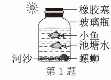 1. 如图所示为一个自制小生态瓶。要使其中的生物存活较长时间,还应该补充的材料是(