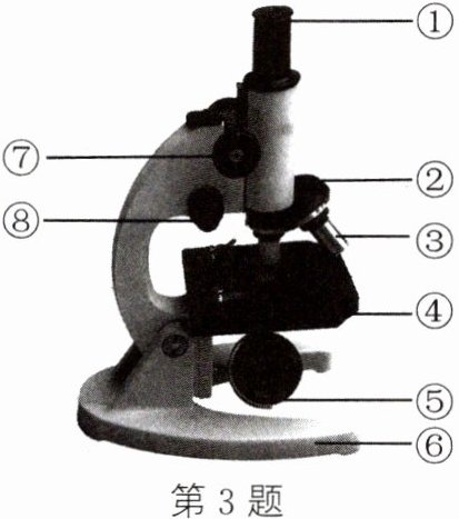 3.(2)低倍物镜 (3)通光孔 物镜 (4)粗准焦螺旋 细准焦螺旋