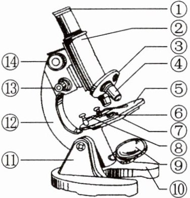 2.目镜 镜筒 转换器 物镜 通光孔 压片夹 反光镜 细准焦螺旋 粗准焦螺旋