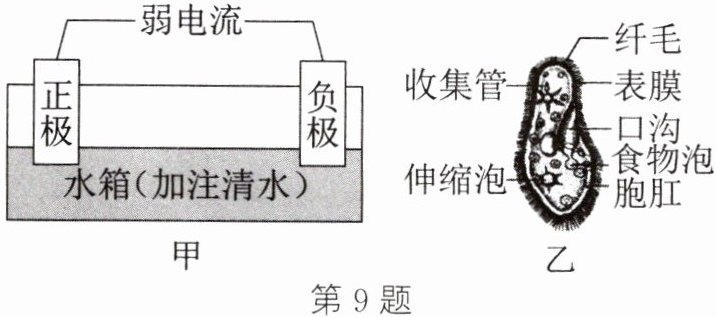 9.(1)①适应 ②正极 纤毛 (2)①探究草履虫是否可以净化水质 ②300mL 15mL不含草履虫的培养液 对照 ③控制单一变量,避免其他因素干扰 ④草履虫可以净化水质