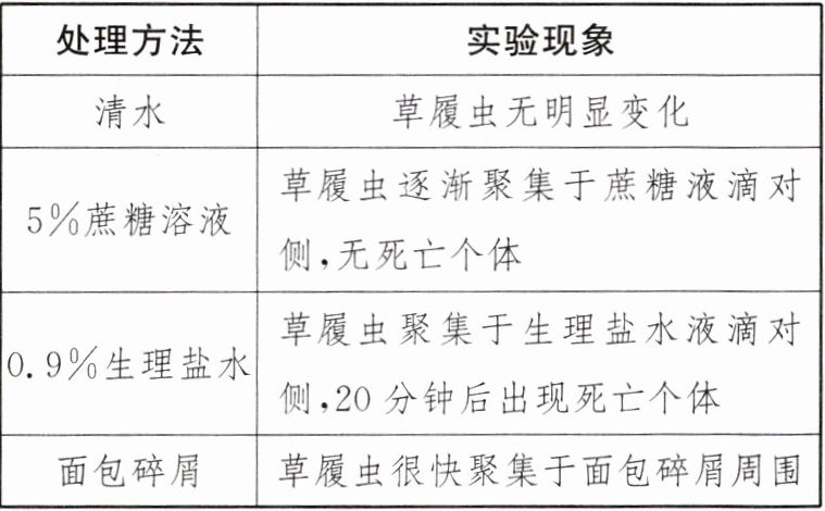 8. (2023·沛县段考)在观察草履虫时,同学们向草履虫液滴的一侧滴加了不同物质,实验处理方法与实验现象记录于表中。下列叙述错误的是(
