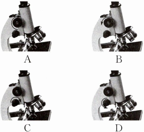 11. (2024·邳州期中)小吴同学在进行显微镜操作时,要让镜筒下降,使物镜接近玻片标本,应转动的调节钮及方向是(