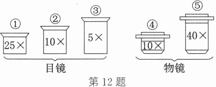 12. 某同学使用的显微镜有如图所示的一些镜头可供选择,要使视野中观察到的细胞数目最多,应选择的镜头组合为(