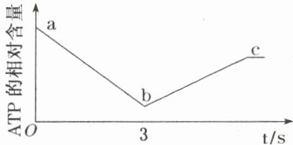 (1)人的骨骼肌细胞中,ATP含量仅够剧烈运动时3s以内的能量供给。运动员参加短跑比赛过程中,肌细胞中ATP的相对含量随时间的变化如下图所示。图中$a→b$的变化过程,说明ATP被水解,释放的能量用于