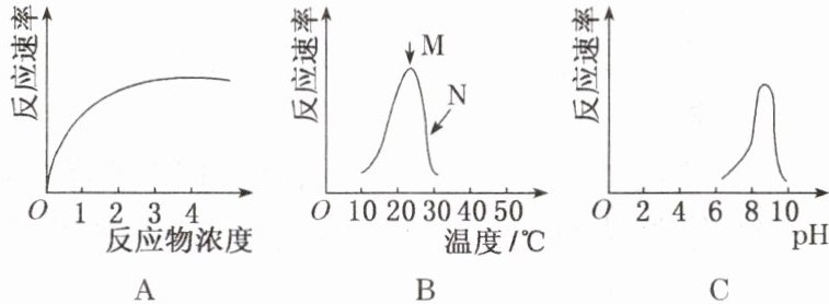 13. 下图中A、B、C三图依次表示在酶浓度一定时,反应速率和反应物浓度、温度、pH的关系。请据图回答下列问题: