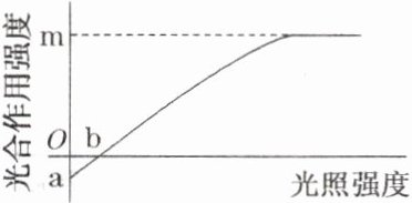 C 温度由25℃升高到30℃,对于呼吸作用而言,达到最适温度,呼吸速率增大;对于光合作用而言,超过最适温度,光合速率下降。因此,a点因呼吸作用加强而往下移;b点为光补偿点,一方面呼吸作用加强,需较强的光照强度才能产生与呼吸作用消耗量相当的有机物,另一方面光合速率下降,产生有机物的速率也下降,也需较强的光照强度才能产生与原来等量的有机物,所以b点右移;m点是光合作用最适温度,酶活性下降,光合作用强度降低,温度超过,故选用。