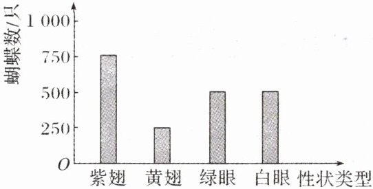 9. 蝴蝶紫翅(P)对黄翅(p)为显性,绿眼(G)对白眼(g)为显性,两对基因独立遗传。某生物小组用紫翅绿眼和紫翅白眼的蝴蝶进行杂交,$F_{1}$出现的性状类型及比例如图所示。下列叙述正确的是 (