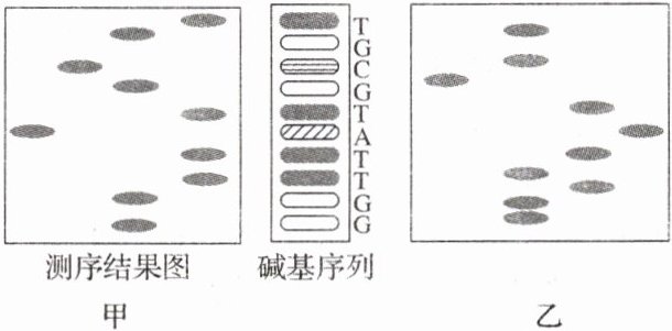 14. 图甲是用 DNA 测序仪测出的某 DNA 片段上一条脱氧核苷酸链中的碱基排列顺序(TGCGTATTGG),请回答下列问题: