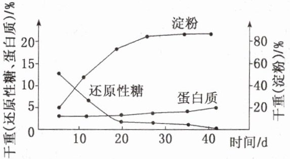 13. 某研究小组测定小麦种子成熟过程中相关物质干重的百分含量,结果如下图所示。请回答: