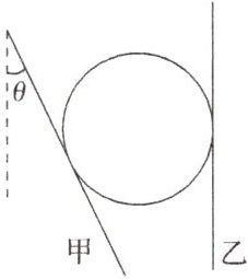 6. 如图所示,用甲、乙两根筷子夹住一个小球,甲倾斜,乙始终竖直。在竖直平面内,甲与竖直方向的夹角为 $ \theta $,筷子与小球间的摩擦很小,可以忽略不计。小球质量一定,随着 $ \theta $ 缓慢增大,小球始终保持静止。下列说法正确的是(