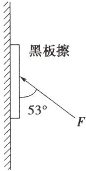 10. 同学们都有过擦黑板的经历。如图所示,一黑板擦(可视为质点)的质量为 $ m = 0.2\mathrm{kg} $,当手臂对黑板擦的作用力 $ F = 10\mathrm{N} $ 且 $ F $ 与黑板面所成角度为 $ 53^{\circ} $ 时,黑板擦恰好沿黑板表面缓慢竖直向上擦黑板。( $ g $ 取 $ 10\mathrm{m/s}^2 $,$ \sin53^{\circ} = 0.8 $,$ \cos53^{\circ} = 0.6 $)