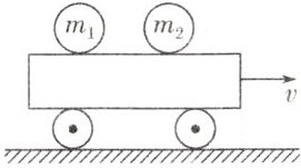 3. 如图所示,在一辆表面光滑的小车上,有质量分别为$m_{1}$、$m_{2}$的两个小球随车一起匀速运动。当车突然停止时,如不考虑其他阻力,设车足够长,则 (