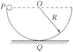 6. 如图所示,一半径为 $ R $ 的半圆形轨道竖直固定放置,轨道两端等高。质量为 $ m $ 的小球自轨道端点 $ P $ 由静止开始滑下,滑到最低点 $ Q $ 时,对轨道的正压力为 $ 2mg $,重力加速度大小为 $ g $。小球自 $ P $ 点滑到 $ Q $ 点的过程中,克服摩擦力所做的功为 (