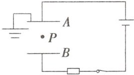6. 如图所示,平行板电容器与电源连接,上极板$A$接地,一带负电的油滴静止于电容器中的$P$点,现将平行板电容器的下极板$B$竖直向下移动一小段距离,则(