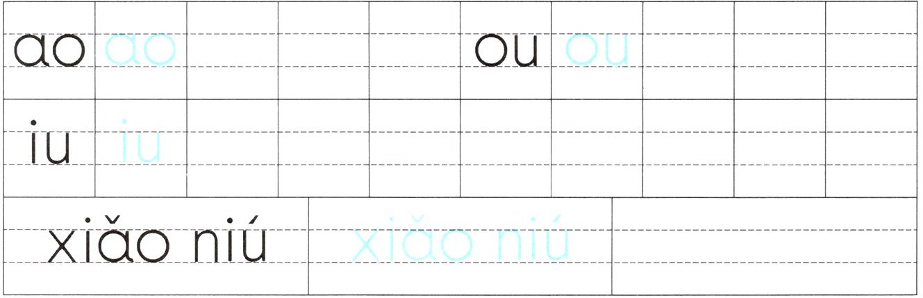 ao ao ao ou ou ou iu iu iu xiǎo niú xiǎo niú