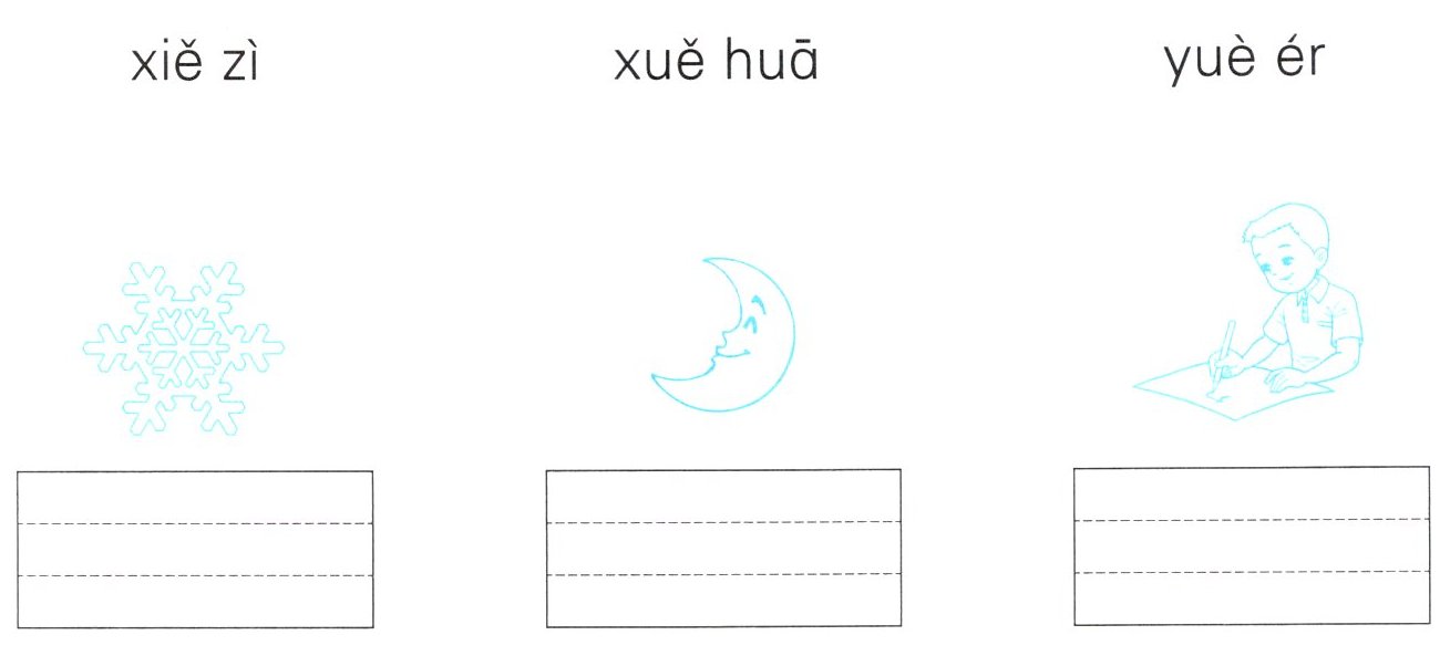 4. 用“a o e i u ü”组成复韵母,写在四线格里。