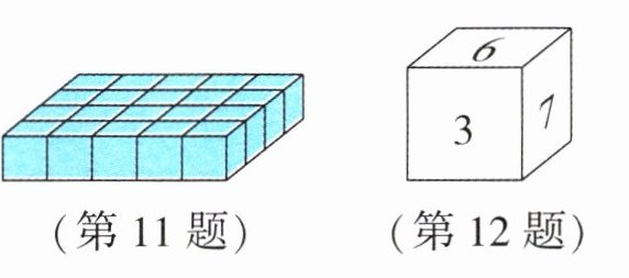 11. 壮壮用同样大的小正方体拼成了如图的立体图形,并给每个面都涂上颜色(包括底面)。这些小正方体中三面涂色的有(