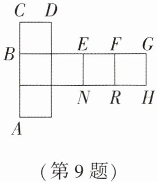 9.R 提示:由正方体展开图特征得,如果将展开图还原成正方体,则A点与R点重合。