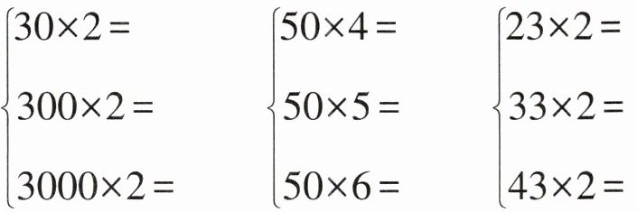 $\begin{cases}30×2= \\300×2= \\3000×2=\end{cases}$