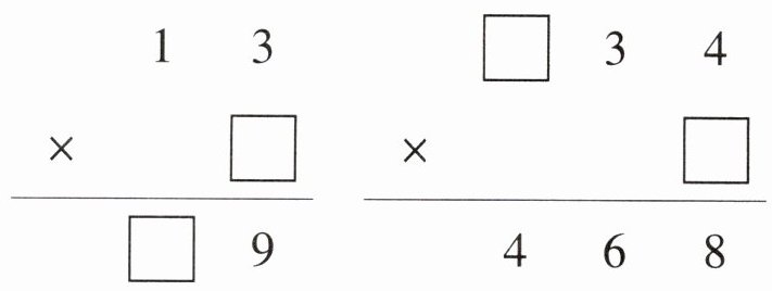 $\begin{array}{r}1\ 3 \\×\ \ \ \ \ \ □ \\\hline□\ 9 \\\end{array}$