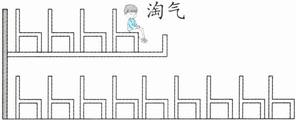 2. 如图,学校组织学生看电影,淘气坐在二楼,笑笑坐在一楼。笑笑坐在什么位置时,淘气才能看到她?在图上画出来。