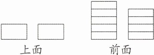 1.5+4=9(个) 提示:从题图可以看出有2堆木块,从前面数,一堆有5个,一堆有4个,所以一共有5+4=9(个)。
