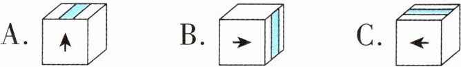 2.4+5+3=12 提示:正方体的6个面中有三组相对的面,观察时只能同时看到三个相邻的面,这三个面分别是三组相对面中的一个,根据“相邻的两个面不可能相对”,逐步推断出一个面对面上的数字。观察题图发现,出现次数最多的数字是1,并发现与1相邻的数字有3、6、2、4,可知1的对面是5。由第一幅图和第二幅图可知,3与1、2、6相邻,且1的对面是5,因此3的对面是4;剩下的2和6相对。因此题图第一幅图的左面是4,第二幅图的左面是5,第三幅图的左面是3,它们的和是4+5+3=12。