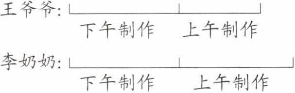 先计算出王爷爷下午制作的数量,由于李奶奶下午制作的数量和王爷爷下午制作的数量相同,所以可以得出李奶奶下午制作的数量。根据李奶奶一天制作的年糕数量,减去下午制作的年糕数量,即可得到李奶奶上午制作的年糕数量。