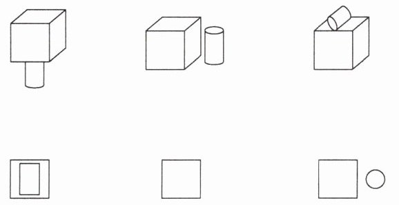 (2)如果该立体图形是由圆柱和正方体拼搭而成的,乐乐重新拼搭。现在他继续从上面看,将他看到的图形与图形拼搭的方式用线连起来。