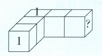 提示:相连正方体接触的面上的数分别是7 - 1 = 6,8 - 6 = 2,7 - 2 = 5,8 - 5 = 3,3的对面是7 - 3 = 4。因为上面的数是1的那个正方体前后是3和4,上下是1和6,所以左右只能是2和5。如果左面是2,右面是5,可得出8 - 5 = 3,7 - 3 = 4,8 - 4 = 4,7 - 4 = 3;如果左面是5,右面是2,可得出8 - 2 = 6,7 - 6 = 1,8 - 1 = 7,正方体上没有7这个数,所以这种情况不可能,“?”处的数只能是3。