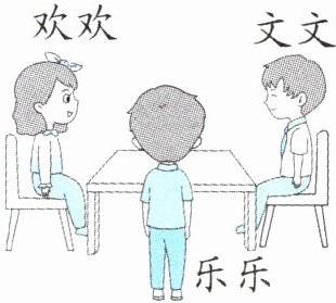 1. 下面四幅图分别是谁看到的?把名字写在括号里。