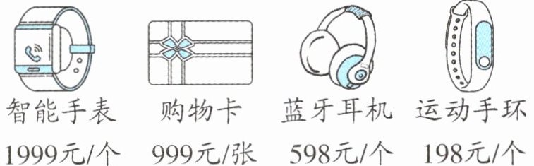 答:选择智能手表、购物卡和运动手环,一共用了8578元。