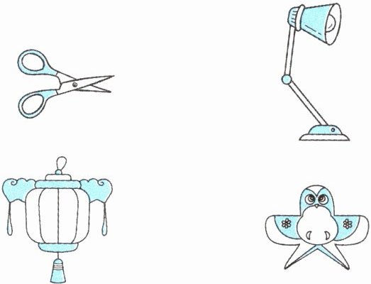1. 在下面物品中各找出一个角,并用笔和尺子描一描。