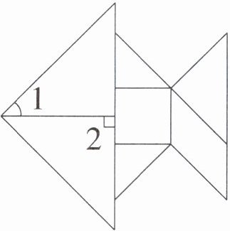 (1)题图是用七巧板拼成的图形,其中∠1是锐角,与它相等的角有11个,∠2是直角,与它相等的角有11个。