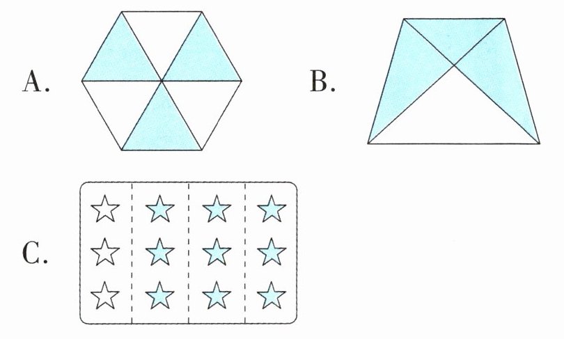 (1)(名校期末真题)下列图中,涂色部分可以用分数$\frac{3}{4}$表示的是( )。