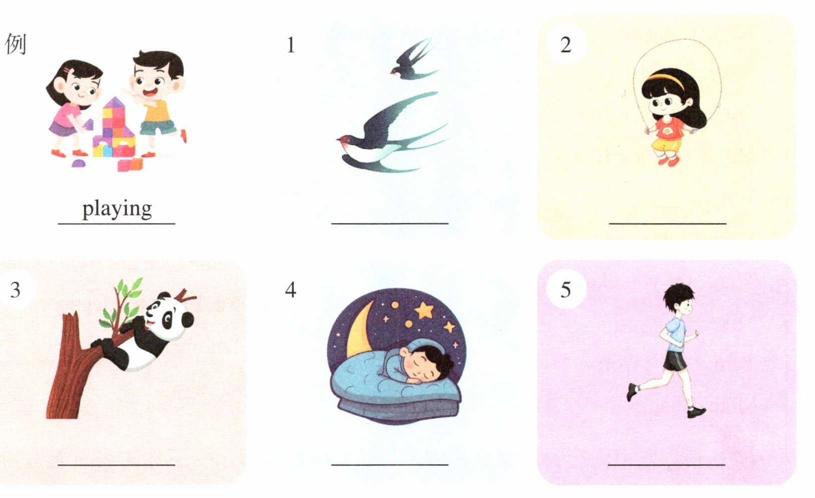一、看图片,仿照例子写出动词的 -ing 形式。