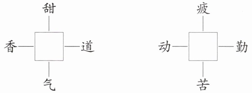 二、填 一 个 字 ,使 它 与 外 面 的 字 都 能 组 成 词 语 。