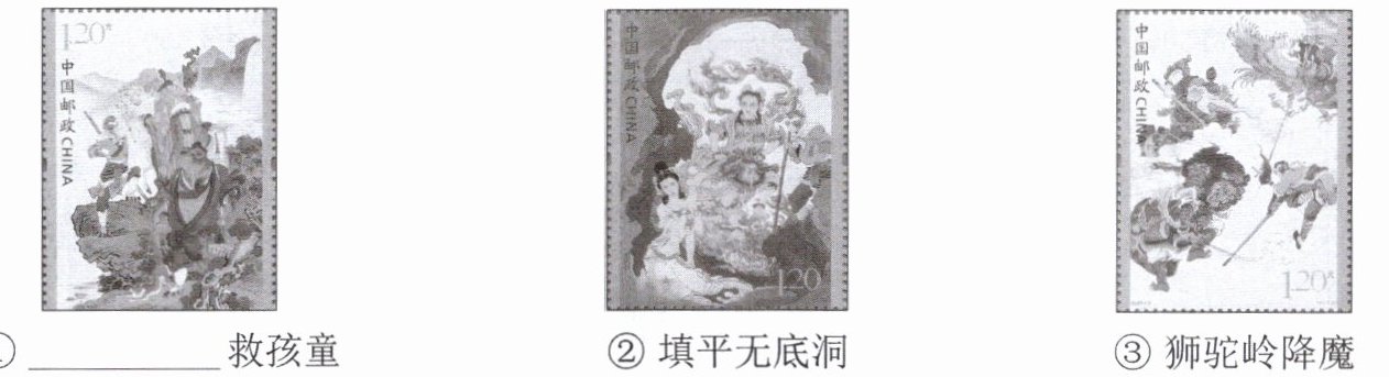 班级开展“邮票里看名著”的活动,请你根据阅读《西游记》的情况,完成各题。