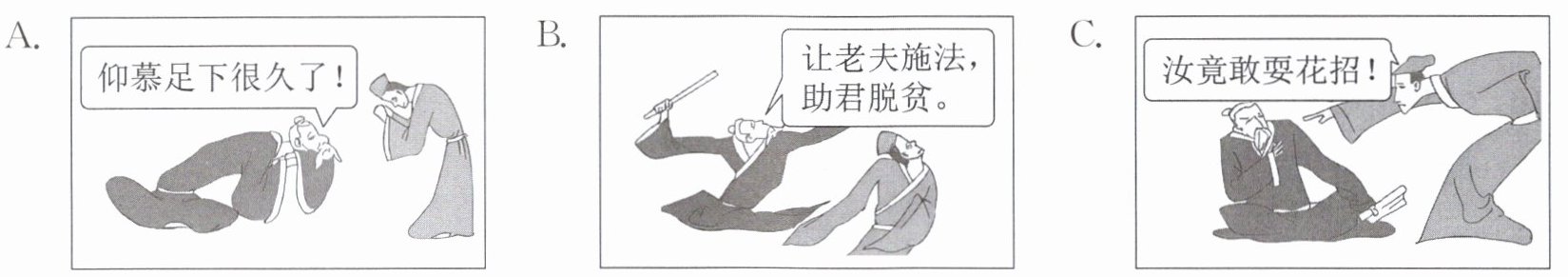 14. 为了让文学角更美观,同学们以这篇文章为素材,设计了以下三幅插图。请根据情节判断,下列选项中不符合本文内容的一幅插图是(______)